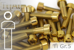Titanium Bolts | Gold | M6 | ISO 4762 | Gr.5 | Cap Head chamfered | Allen Key
